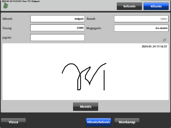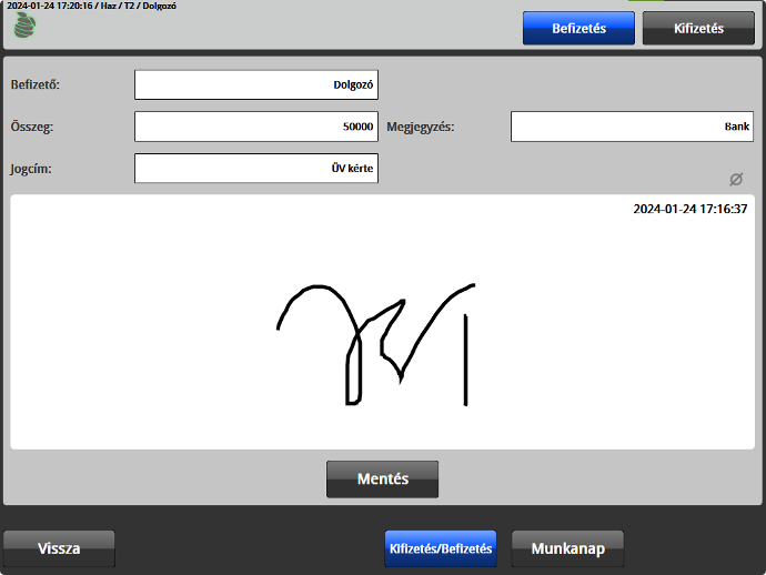 Be- és kifizetés rögzítése a rendszerben