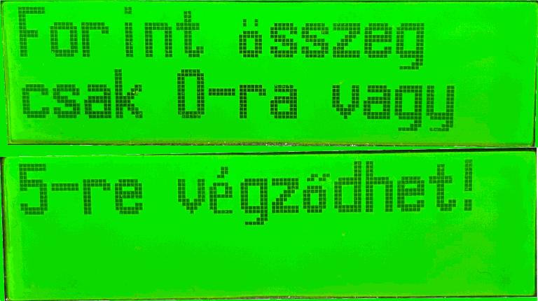 A folyamat során fontos, hogy a begépelt összegnek nullára vagy ötre kell végződnie, különben a pénztárgépen egy erre figyelmeztető üzenet jelenik meg: