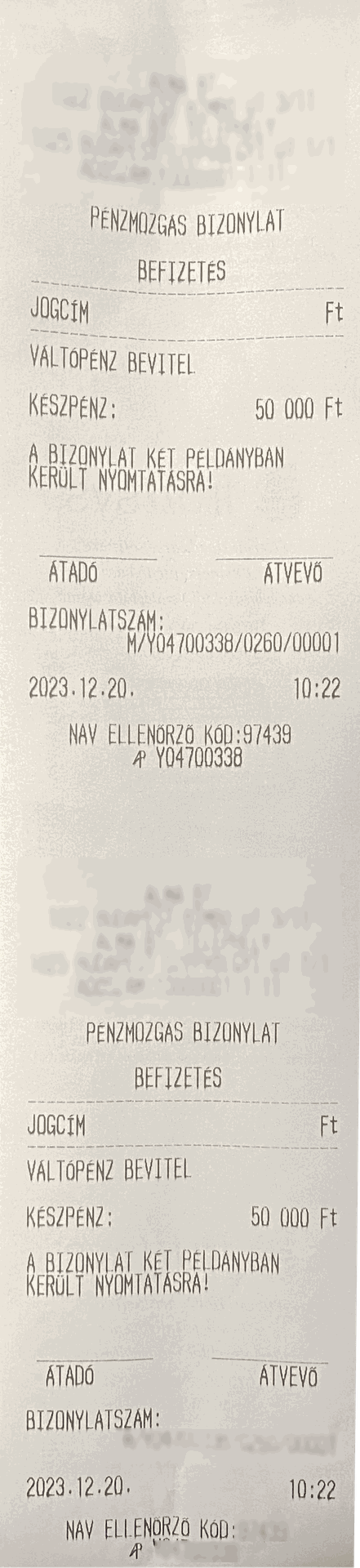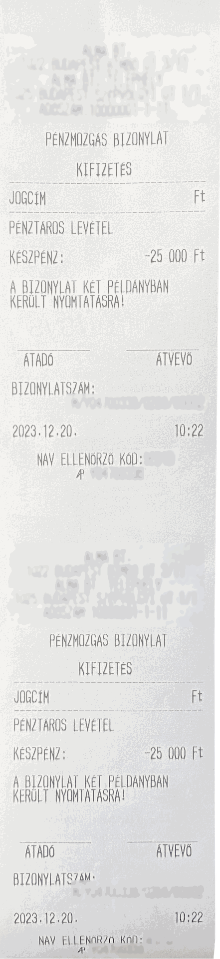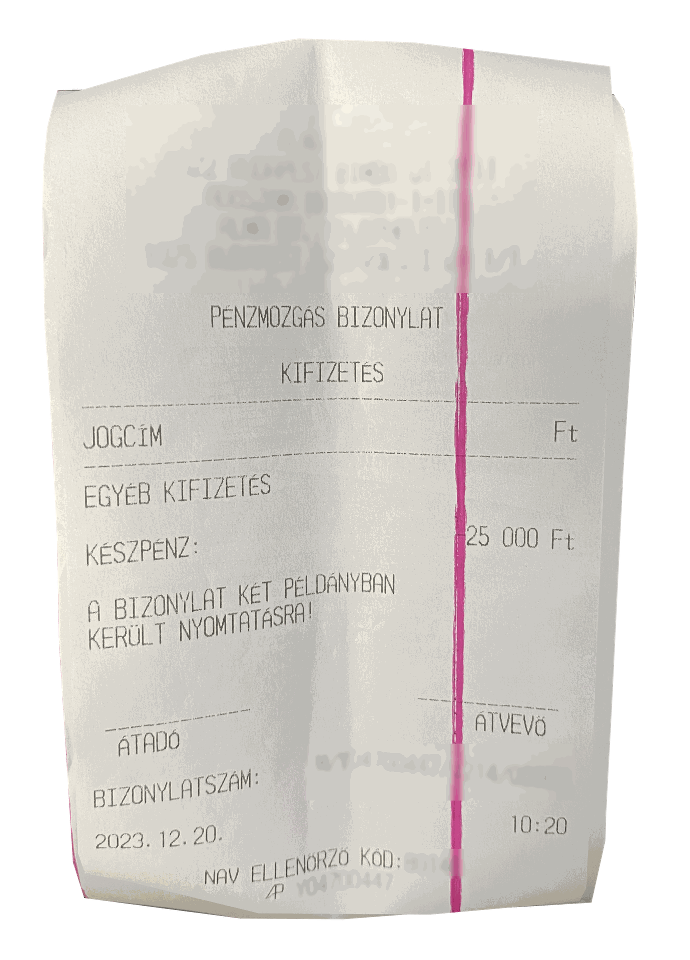 Adóügyi nyomtató által nyomtatott bizonylatok