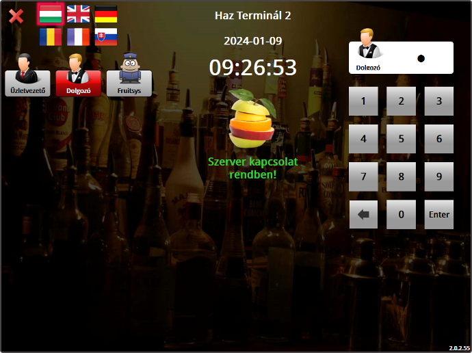 A bejelentkező képernyőn mindig látni fogod, hogy a terminál, amit éppen használsz melyik pultra csatlakozik (pl.: Terasz), és a terminál számát.