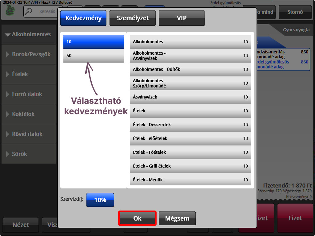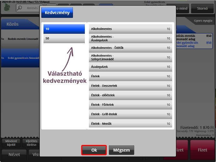 A rendszerben két féle módon lehet kedvezményt alkalmazni az értékesítés során: