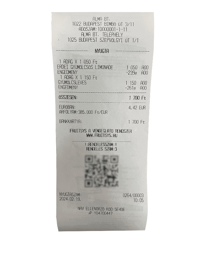 A kedvezmény értéke termékenként engedmény névvel jelenik meg az adóügyi bizonylaton.