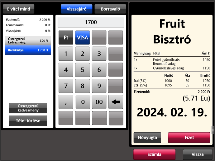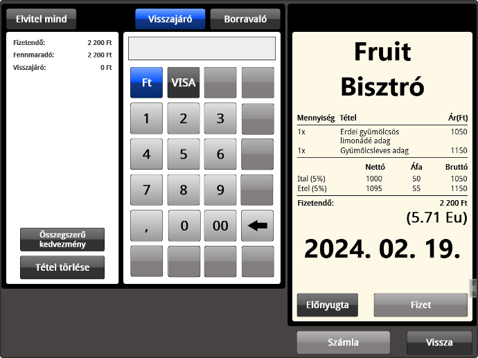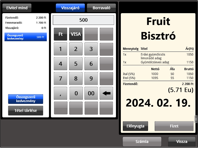 Add meg a fizetőeszközt a vásárlás rögzítéséhez!