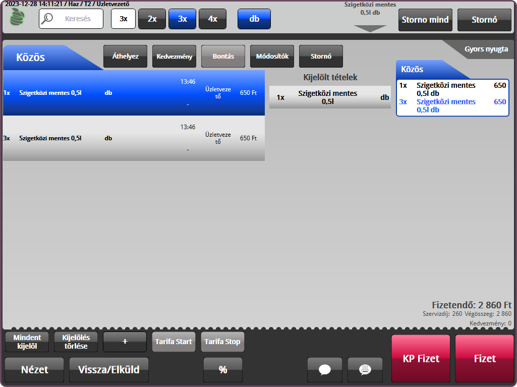 A termék bontás funkció elsősorban nagyobb társaságoknál lehet hasznos, ahol a vendégek külön-külön szeretnék fizetni az elfogyasztott termékeket, a termékek pedig egyben lettek felütve.