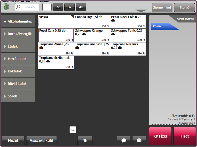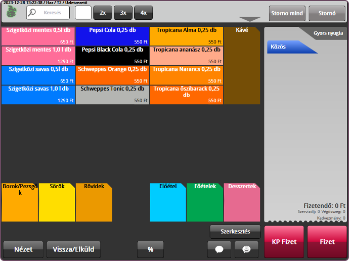 A vásárló vagy vendég által vásárolt termékeket felütés után a rendszer a Közös listába helyezi.